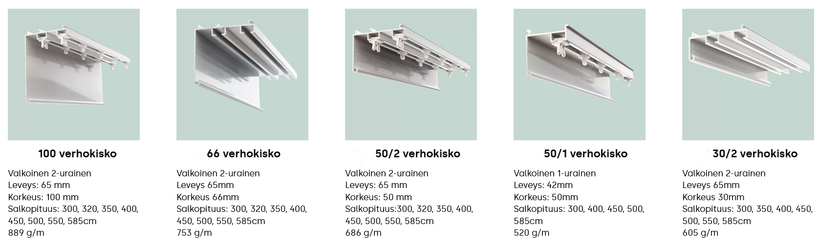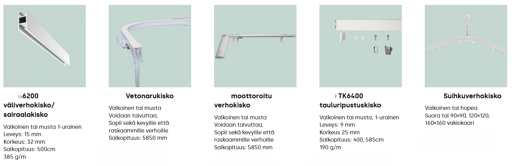 Taulu ja verhokiskot asennettuna.