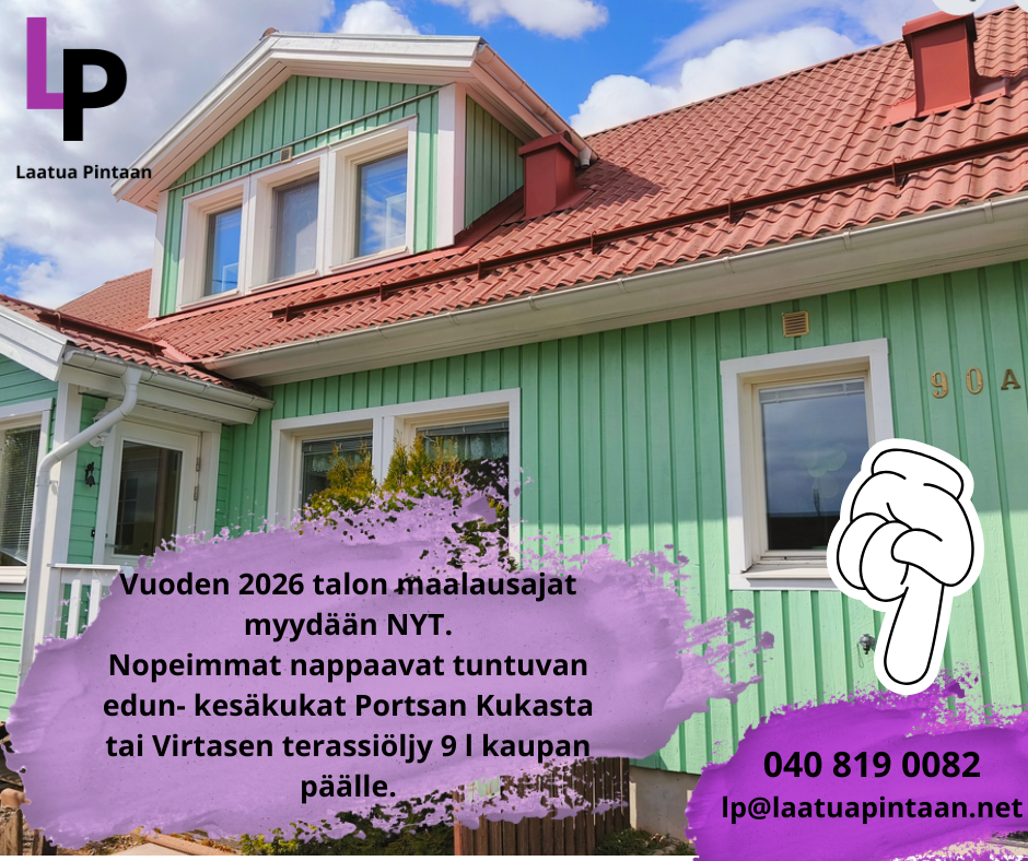 LP Laatua Pintaan on luotettava ja ammattitaitoinen kotimainen yritys, jolla on yli 25 vuoden kokemus talonmaalaus ja huoneistosaneeraus alalta. Olemme erikoistuneet näihin töihin ja tarjoamme asiakkaillemme laadukkaita ja kestäviä ratkaisuja. Maalaamme talon aina pensselillä, näin saadaan paras mahdollinen tartunta uudelle maalipinnalle. Huoneistosaneeraukset suunnittelemme yhdessä asiakkaan kanssa vahvalla kokemuksella jo vuodesta 1998.Teemme asiakkaan kanssa aina ennen työn aloitusta kirjallisen sopimuksen, jossa urakan kokonaishinta on näkyvissä. Hinta sisältävät aina tarvikkeet, alv:n 25,5 % sekä työn. Työn osuudesta saa 35 % kotitalousvähennyksen.